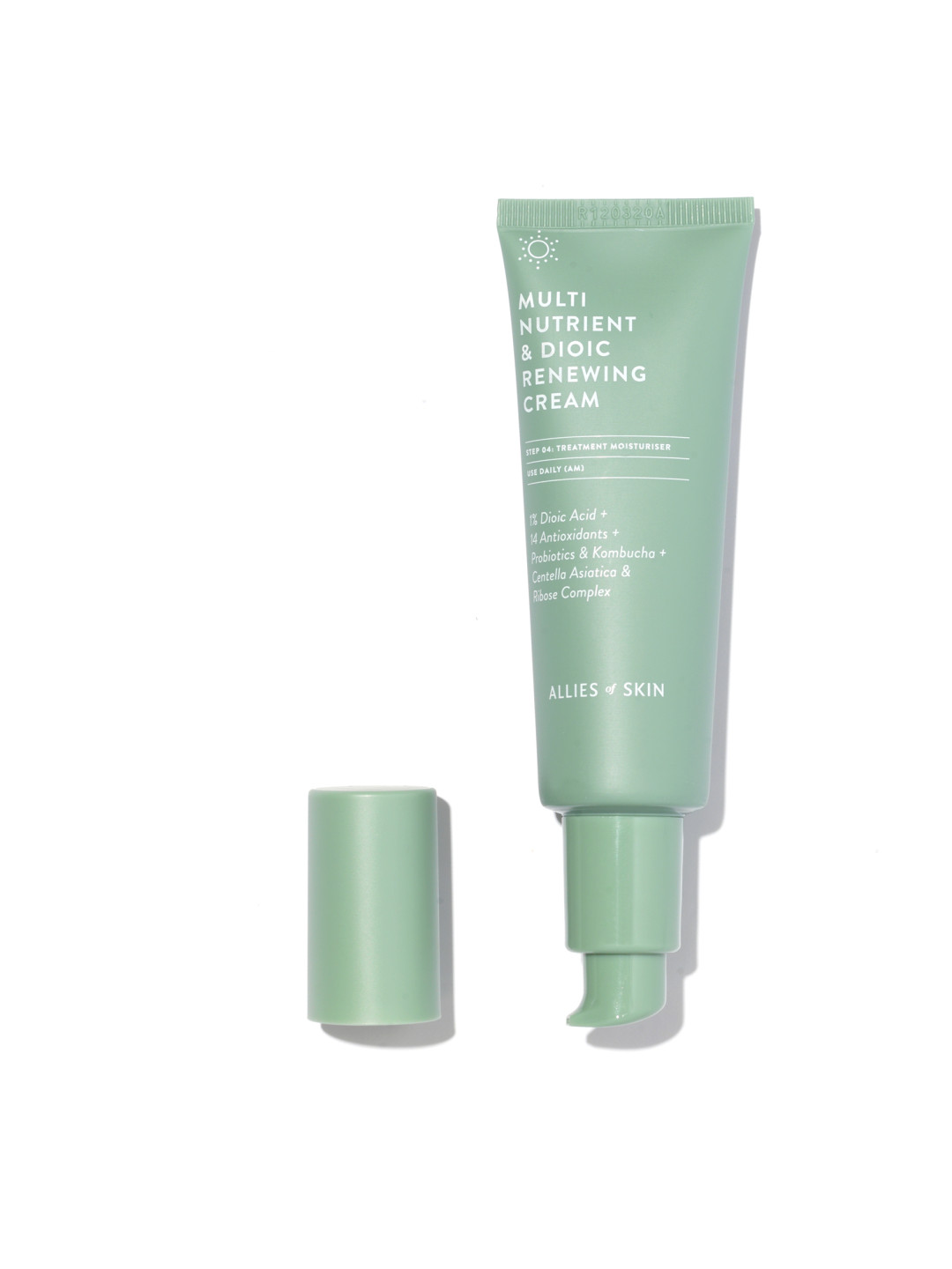 Як і всі продукти Allies of Skin, Renewing Cream для обличчя не містить компонентів, що провокують подразнення чи алергію, тому рекомендований до використання в тому числі власниками чутливої чи подразненої шкіри. Multi Nutrient & Dioic Renewing Cream від Allies of Skin – щоденний крем для обличчя, що має надлегку кремово-гелеву текстуру та мультифункціональну формулу, направлену одночасно на зволоження, боротьбу з запаленнями й висипаннями та оздоровлення проблемної шкіри. Продукт обов’язково оцінять не лише жінки, а й чоловіки, який прагнуть за допомогою одного засобу забезпечити шкірі комплексний догляд.