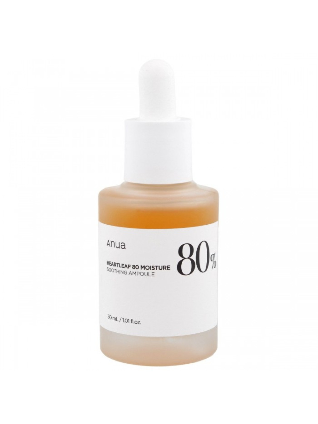 Заспокійлива ампула для обличчя з екстрактом хауттюйнії Anua Heartleaf 80% Soothing Ampoule – заспокійлива ампульий серум для обличчя з екстрактом хауттюйнії в концентрації 80%, який знімає подразнення, зменшує почервоніння, має заспокійливу дію і прискорює загоєння прищів. Бетаїн заспокоює подразнення і прискорює регенерацію епідермісу. Пантенол має заспокійливу дію, стимулює оновлення клітин і прискорює процес загоєння ран. Гіалуронат натрію додатково зволожує, розгладжує і підтягує шкіру. Засіб підходить для всіх типів шкіри.