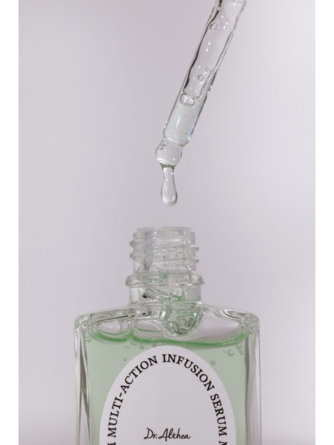 Dr. Althea - Pro Lab Multi-Action Infusion Serum - багатофункціональна сироватка для обличчя. Вона має легку текстуру, що швидко вбирається і помітно покращує стан шкіри. До складу засобу входить екстракт центелли азіатської, який має заспокійливі властивості та прискорює загоєння подразнень і ран. Екстракт шовковиці живить і захищає від вільних радикалів, а аденозин уповільнює процеси старіння шкіри і зменшує помітність зморшок. 6 видів гіалуронової кислоти відповідають за глибоке зволоження епідермісу, а освітлювальний ніацинамід вирівнює тон шкіри та надає їй здорового сяйва. Продукт веганський.