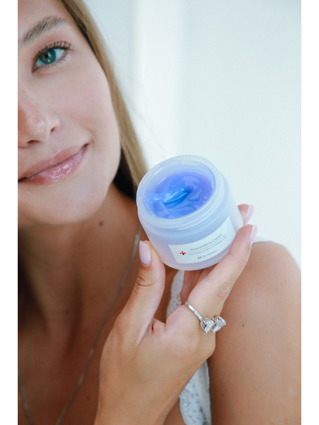 - Гвайазулен (100ppm) – потужний активний компонент отриманий з блакитної ромашки, що ефективно зменшує почервоніння, заспокоює подразнення, прискорює загоєння, а також зменшує запалення в шкірі.
