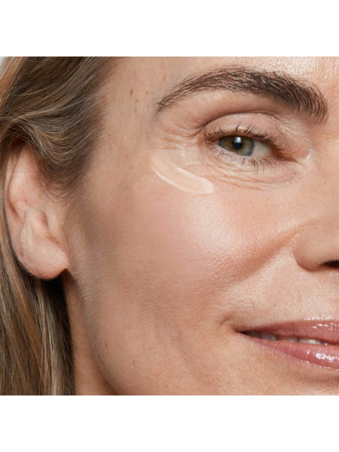 Комплекс містить 5 антивікових пептидів, які розгладжують лінії й зморшки, омолоджують і оновлюють шкіру навколо очей. В той же час омолоджувальний протеїновий комплекс живить область навколо очей, посилює утворення колагену, зменшує одутлість. Відзначена нагородами формула також містить гесперидин, які зменшує темні кола, і натуральний гліцерин дбайливо гідратує. Ідеально підходить для використання під макіяж. Помітно підтягує і омолоджує шкіру навколо очей. До складу вдосконаленої формули входять корисні пептиди й протеїни, які допомагають усунути ознаки старіння шкіри навколо очей. Комплекс із 5 противікових інгредієнтів підтягує й зміцнює контури очей, стимулює вироблення колагену й мінімізує запалення. Антивіковий протеїновий комплекс, отриманий із екстракту рису й соєвих бобів, природним шляхом зменшує одутлість і розгладжує область під очима. В той же час, гесперидин зміцнює капіляри в шкірі, тонізує шкіру і усуває темні кола. Гідратуюча формула містить гліцерин, який живить і глибоко зволожує шкіру, розгладжує лінії дегідратації. Шкіра під очима стає підтягнутою, зволоженою, бадьорою і більш яскравою.