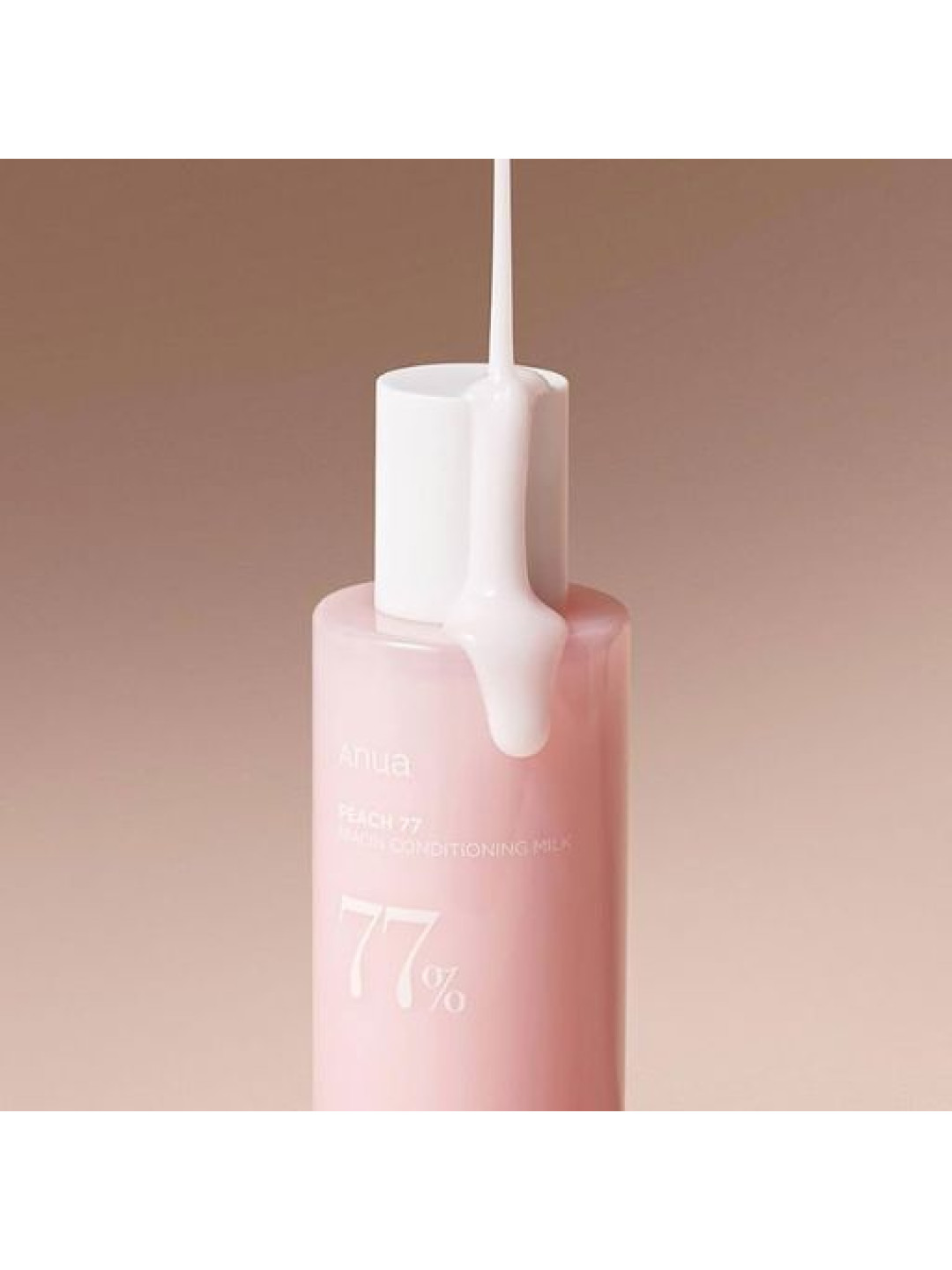 Молочко-емульсія з екстрактом персика Anua Peach 77% Niacin Conditioning Milk – молочко для обличчя зі зволожувальною та зміцнювальною дією. Екстракт персика зволожує, тонізує та покращує стан шкіри. Ніацинамід контролює вироблення шкірного сала та зменшує недоліки. Пантенол заспокоює подразнення, зволожує і регенерує шкіру. Гіалуронат натрію захищає від втрати вологи і розгладжує шкіру, а екстракт персикового цвіту освітлює і нейтралізує вільні радикали.