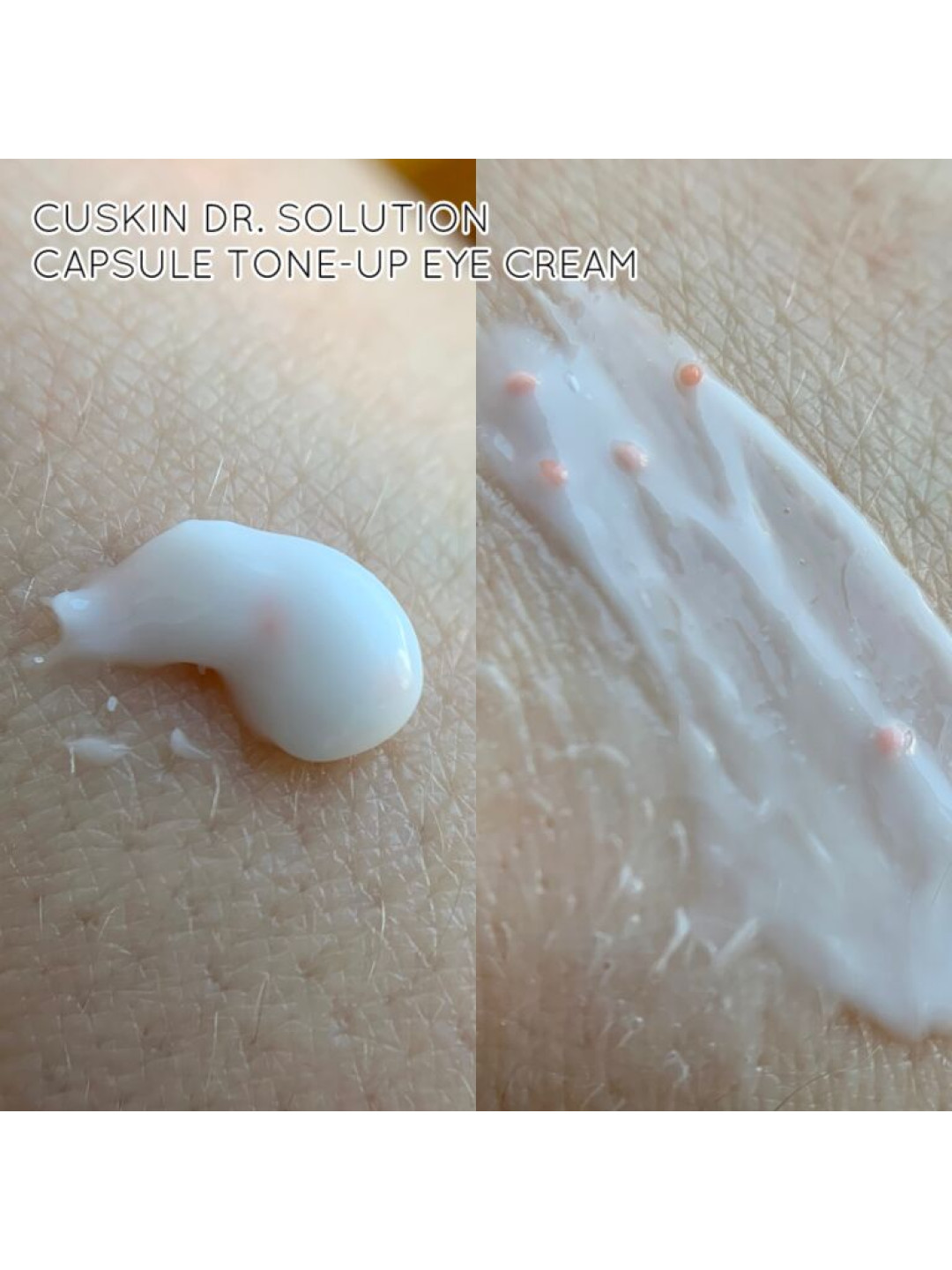 Для шкіри навколо очей CU Skin пропонує CU крем Dr.Solution Capsule Tone-Up Eye Cream, призначений для інтенсивного антивікового догляду. Засіб з комплексом вітамінів, пептидами та амінокислотами створено з використанням технології інкапсуляції. Завдяки цьому корисні речовини легко проникають углиб тканин і швидко починають діяти, розгладжуючи зморшки та підтягуючи покриви, усуваючи темні кола та набряки.