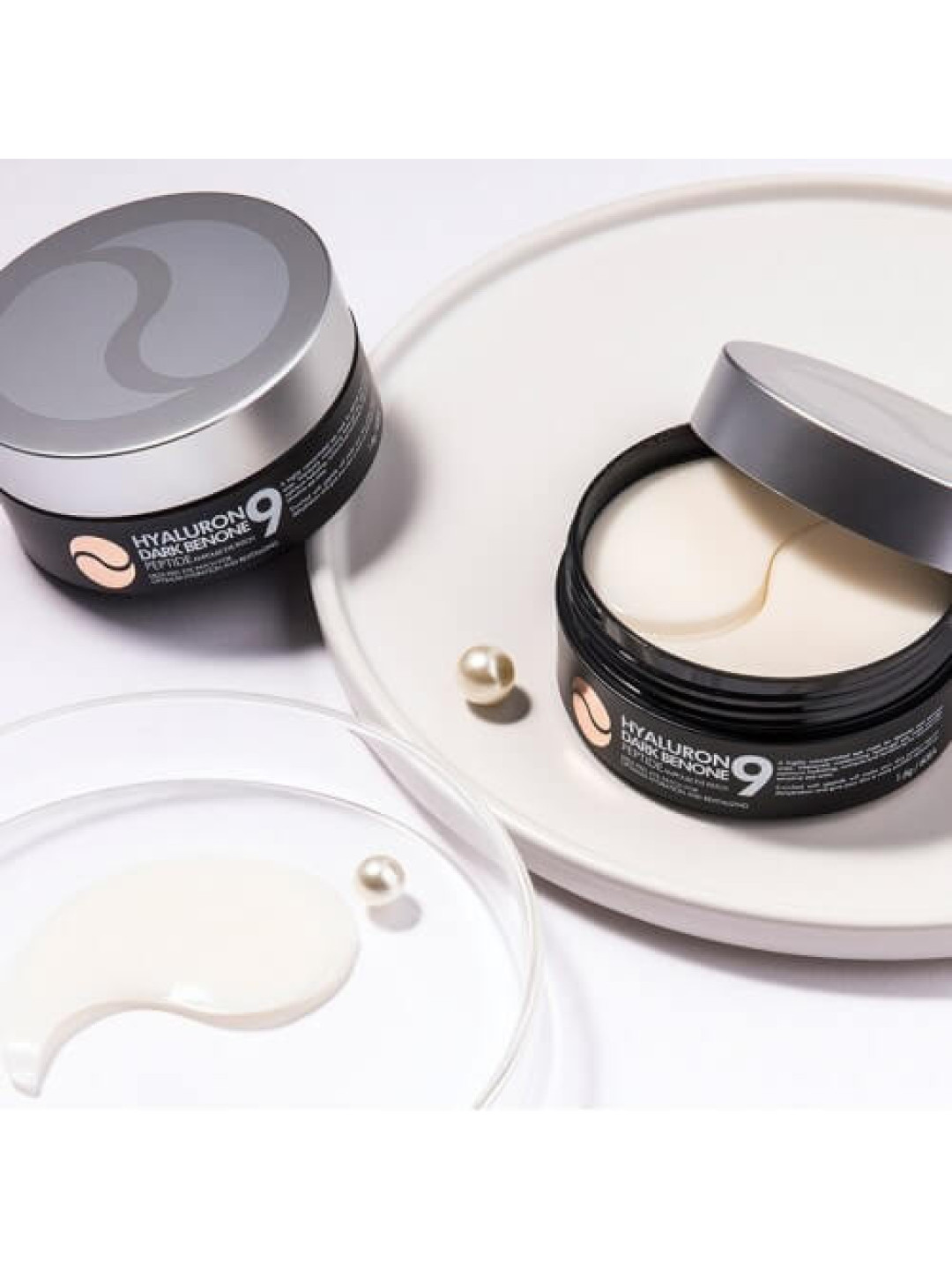 Освітлювальні патчі з пептидами Medi-Peel Hyaluron Dark Benone Peptide 9 Ampoule Eye Patch спрямовані на активну боротьбу з темними колами та припухлістю, м'яко освітлюють та освіжають. Мають відбілюючу дію і допомагають скоротити вираженість пігментних плям. Комплекс пептидів має омолоджуючу дію, сприяє розгладжуванню зморшок та збереженню молодості шкіри. Мультифункціональні патчі комплексно впливають на шкіру, освітлюючи, зволожуючи та омолоджуючи. Вони допомагають розгладити шкірні заломи і скоротити глибину зморшок, відбілюють пігментацію і темні кола під очима, усувають сухість і мають заспокійливу дію. Патчі є багатофункціональними, підходять для використання в області навколо очей, у зоні міжбров'я та носогубних складок.
