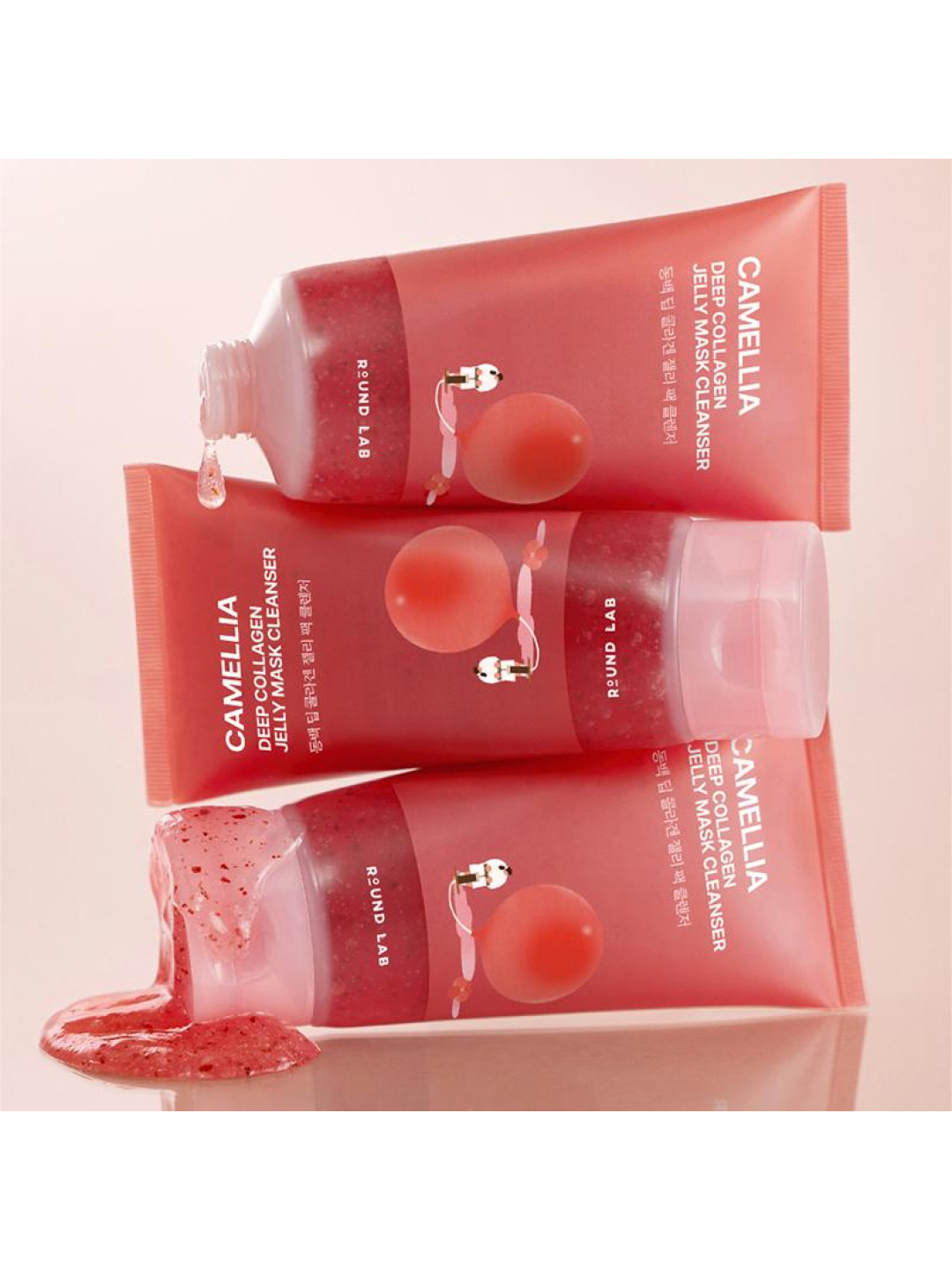 ROUND LAB Camellia Deep Collagen Jelly Mask Cleanser — гель для вмивання та маска для шкіри одночасно.