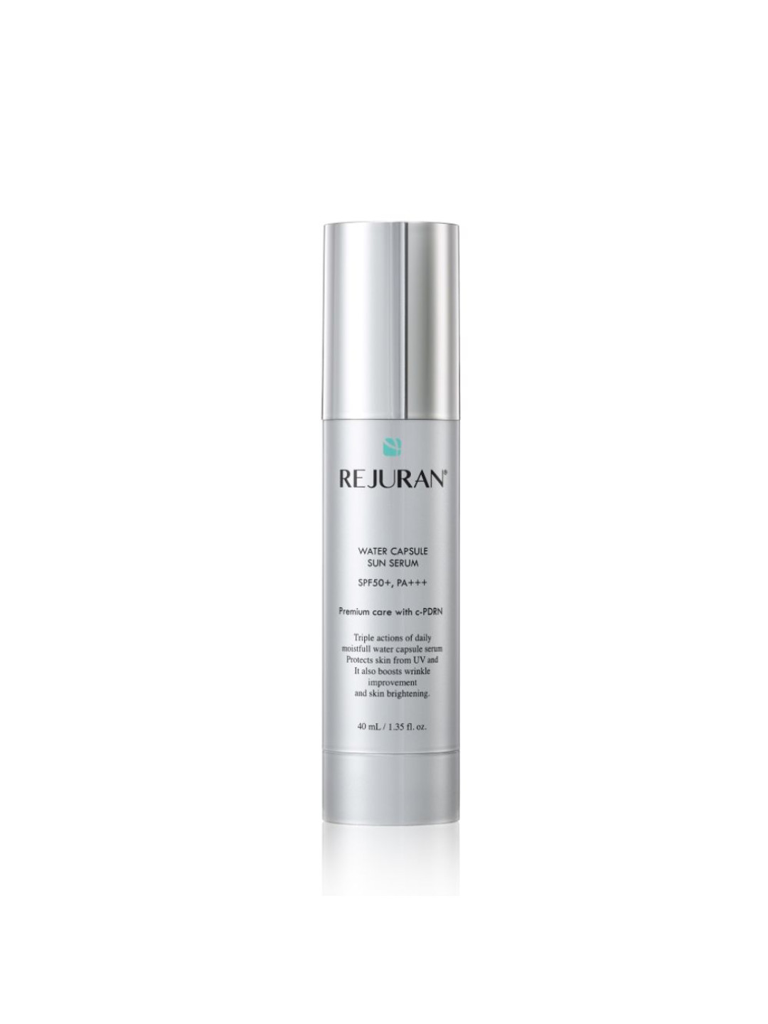 Сонцезахисна сироватка з гідрокапсулами Rejuran Water Capsule Sun Serum SPF 50+, PA+++ створена для комплексного догляду за шкірою з сонцезахисною, освітлювальною та регенеративною дією. UV-фільтри ефективно блокують UVA- та UVB-випромінювання - запобігаючи фотостарінню. Комбінація ніацинаміду та рослинних екстрактів освітлює шкіру, вирівнює її тон, зменшує пігментацію та тьмяність, повертаючи свіжий і збалансований вигляд. Гідролізована ДНК лосося стимулює клітинне оновлення, покращує еластичність та підтримує відновлення шкіри на глибокому рівні. У результаті шкіра виглядає гладкою, доглянутою та наповненою природним сяйвом.