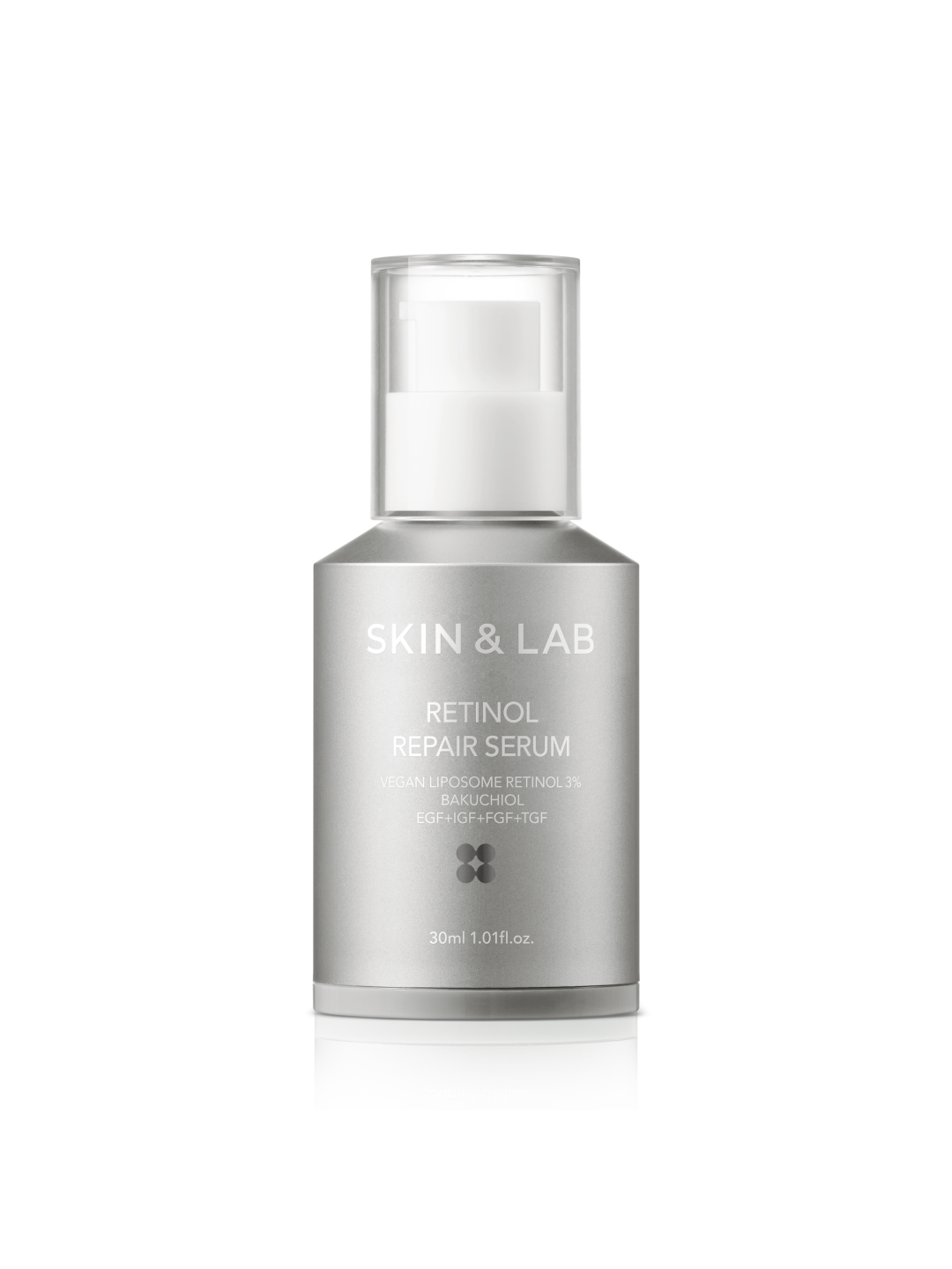 SKIN&LAB Retinol Repair Serum — перший продукт цього бренду з ретинолом. Розгладжує зморшки, підтягує овал обличчя та робить шкіру еластичною, не провокуючи висипання. Містить стабілізовану форму веганського ретинолу, бакучіол та 9 типів пептидів. Клінічно доведено, що такий тандем компонентів здатен зменшити зморшки, “гусячі лапки” навколо очей та навіть глибокі носогубні складки. Підходить для всіх типів шкіри, включно з чутливою. Можна викорстовути для першого знайомства с ретинолом. Має легку кремову текстуру, швидко вбирається та освіжає шкіру.