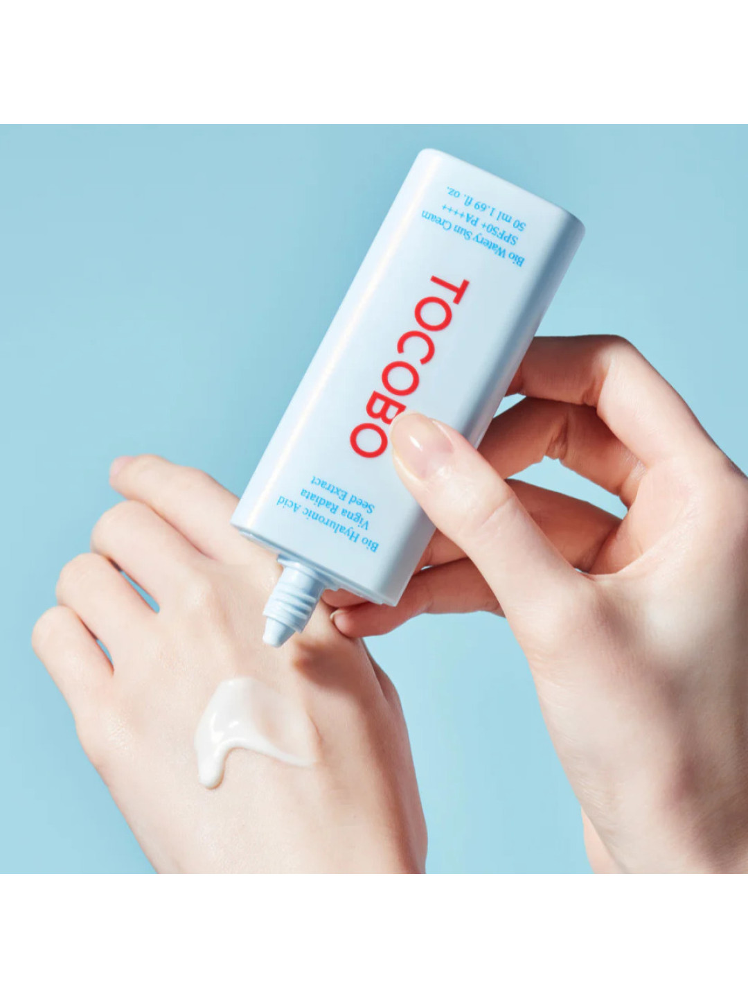 Легкий сонцезахисний крем для обличчя зі зволожувальним ефектом забезпечує надійний і безпечний захист шкіри від руйнівної дії ультрафіолету (променів типів А і В). Забезпечує комфорт і зволоження впродовж дня, допомагає утримувати вологу і запобігає зневодненню шкіри. Tocobo Bio Watery Sun Cream SPF50+ швидко вбирається, і не залишає липкості.
